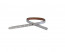 Tira de cuero para hebilla. 230x6mm. Plata clara metalizada-cantos negros. Calidad superior.